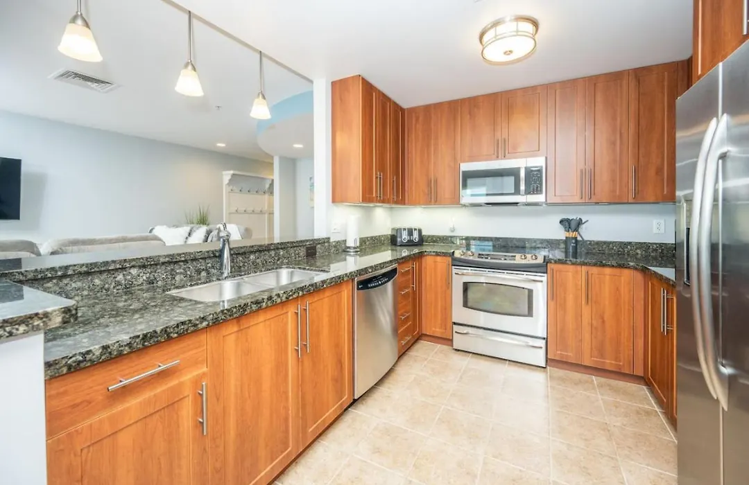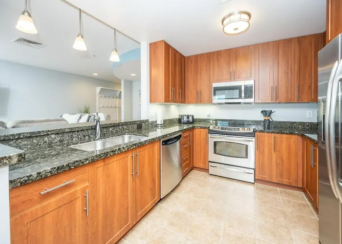 Eine komplette Küche sowie ein Geschirrspüler sind in der Villa New 3Bd 2Bth Oceanfront Pool Boat 224B ebenfalls vorhanden. Verbringen Sie einen schönen Abend in den nächstgelegenen Restaurants Baja Restaurant und Cabana Bar & Grill, die in ca. 5 Gehminuten Entfernung von der Unterkunft in Virginia Beach ist.